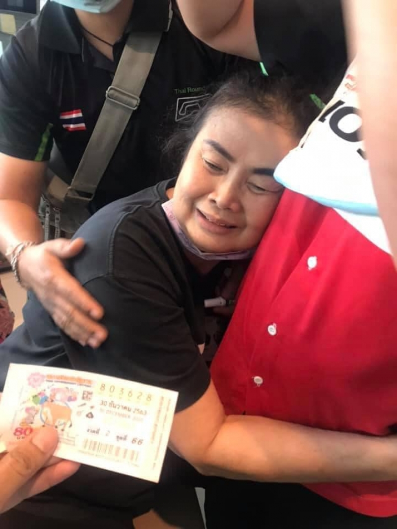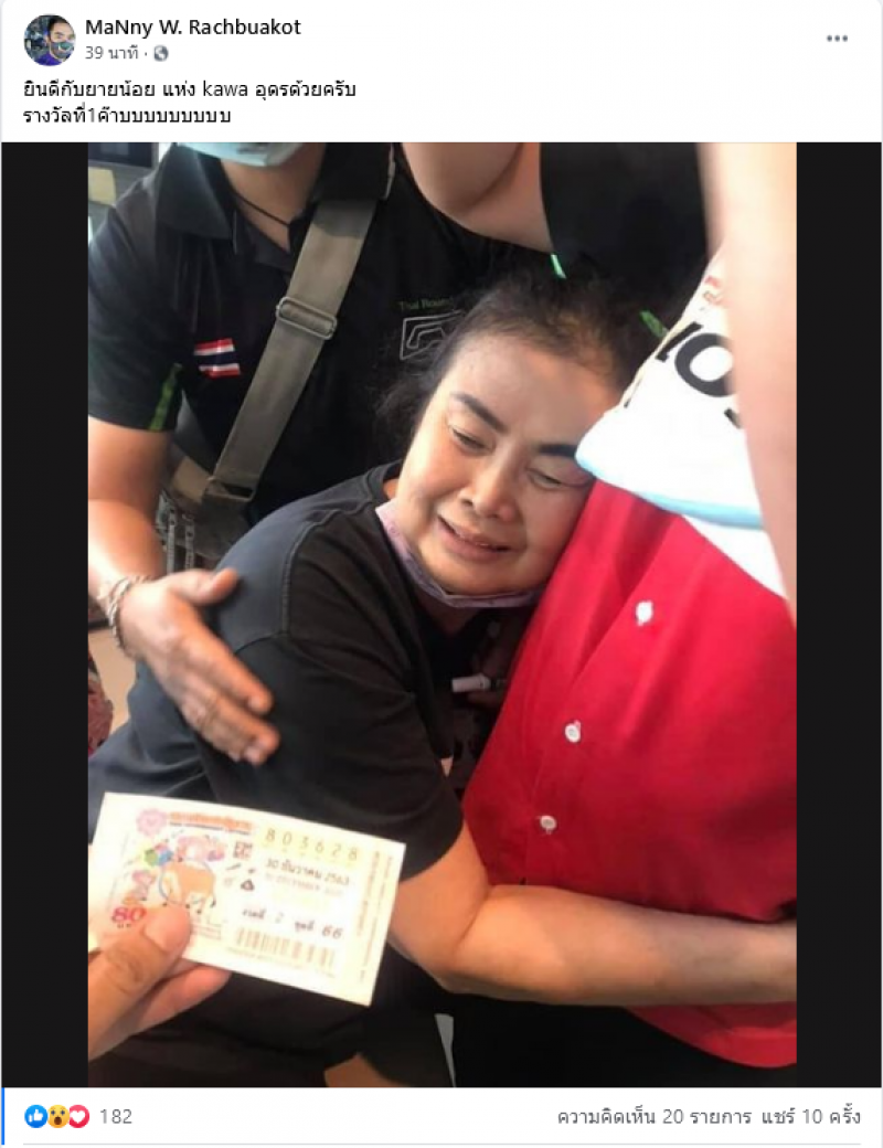 ล่าสุดมีผู้ใช้เฟสบุ๊ครายหนึ่งได้ออกมาโพสต์ภาพสาวใหญ่ท่านหนึ่งถูกรางวัลที่ 1 พร้อมทั้งได้ระบุข้อความว่า