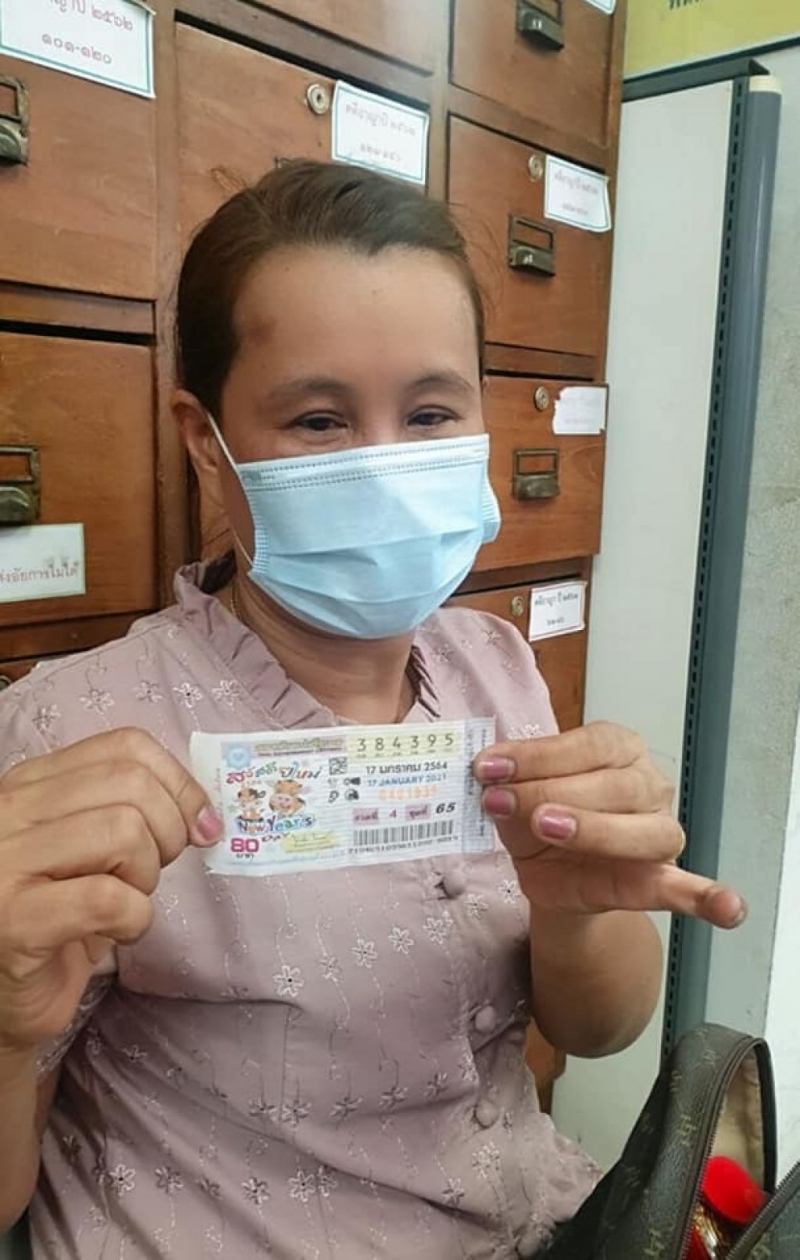 ตนตั้งใจที่จะซื้อเลข 95 แต่พบว่ามีคนซื้อตัดหน้าไปก่อนแล้ว 1 ใบ ทำให้เหลือเพียง 1 ใบเท่านั้น จึงเสี่ยงซื้อติดไว้ ประกอบกับช่วงกลางเดือนเป็นวันครู หวังว่าอาจจะโชคดีบ้าง หลังจากนั้นก็เก็บไว้ในกระเป๋า กระทั่งวันนี้ในตอนแรกก็ลุ้นเพียงเลขท้าย 2 ตัว แต่ผิดหวังเพราะออกเลข 15 และก็คิดว่าคงจะไม่มีโชคแล้ว