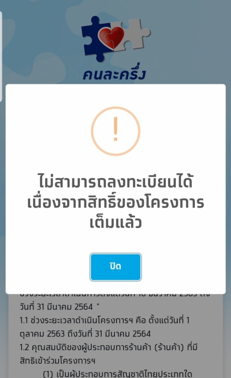 จากกรณีที่โครงการคนละครึ่ง เฟส 2 รอบเก็บตก ได้เปิดให้ลงทะเบียนเพิ่มเติมอีกครั้ง จำนวนกว่า 1,345,056 ล้านสิทธิ เปิดให้ลงทะเบียนผ่านทางเว็บไซต์ www.คนละครึ่ง.com ตั้งแต่เวลา 06.00 น.จนกว่าจะลงทะเบียนครบ โดยจะได้รับ 3,500 บาท และเริ่มใช้จ่ายได้ตั้งแต่วันที่ 25 มกราคม - 31 มีนาคม 2564