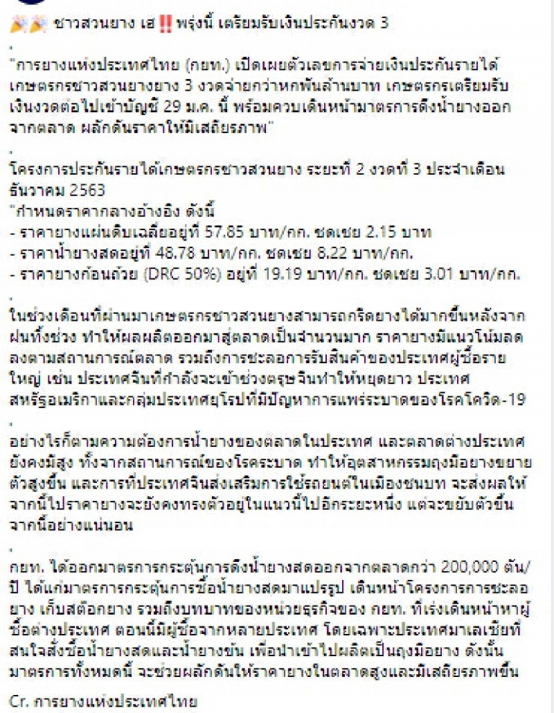ชาวสวนยางเฮ วันนี้ 29 ม.ค 2564 เตรียมรับเงินประกันงวด 3
