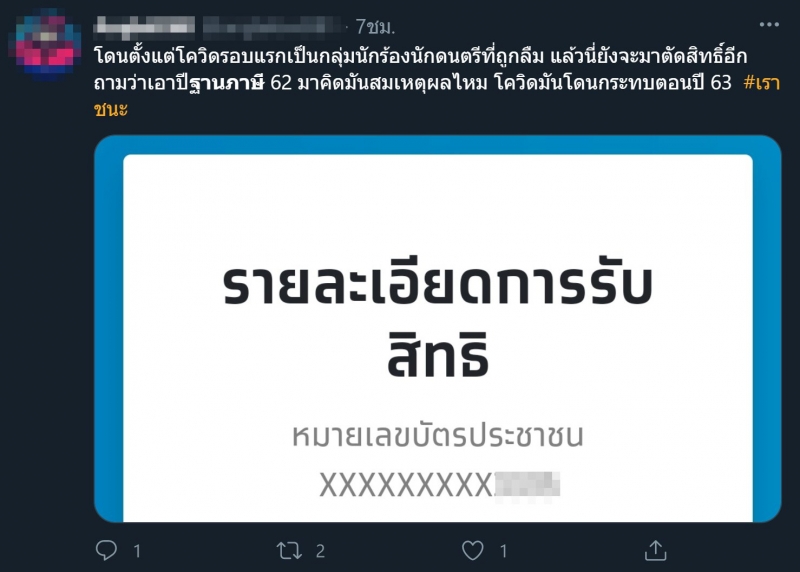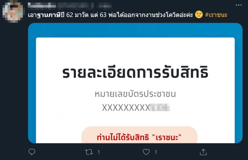 กลุ่ม 2 เช็กสิทธิ เราชนะ ได้แล้ววันนี้พบปัญหาไม่ผ่าน ใช้ฐานภาษี 62
