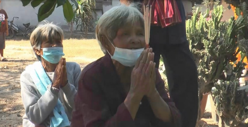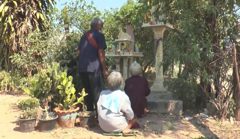 จากนั้นยายประกอบ พร้อมพี่สาวและพี่เขยก็ได้จุดธูปกราบไหว้ศาลหน้าบ้าน เพื่อบนบานตามความเชื่อโดยยายประกอบ บอกว่าหากรัฐสามารถช่วยเหลือไม่เก็บเงินเบี้ยผู้สูงอายุคืนได้จริง และให้ได้รับสิทธิเบี้ยคนชราคืนเหมือนเดิมได้ ตนเองก็จะโกนผมเพื่อ แก้ บน เพื่อให้หมดทุกข์ตามความเชื่อ