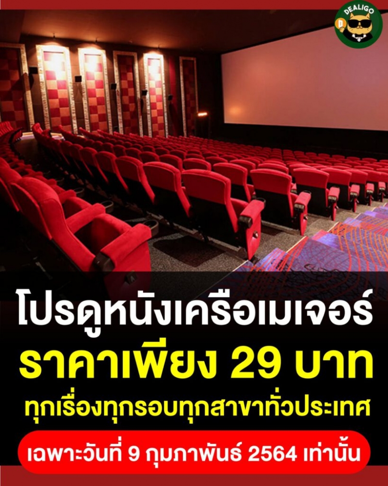โปรดูหนังเครือเมเจอร์ ราคาเพียง 29 บาทเท่านั้น ทุกเรื่องทุกรอบทุกสาขาทั่วประเทศ เฉพาะวันที่ 9 กุมภาพันธ์วันเดียวเท่านั้น #TRAVELDEAL ดูหนัง 29 บาท ทุกเรื่อง ทุกรอบ ทุกสาขาทั่วประเทศ