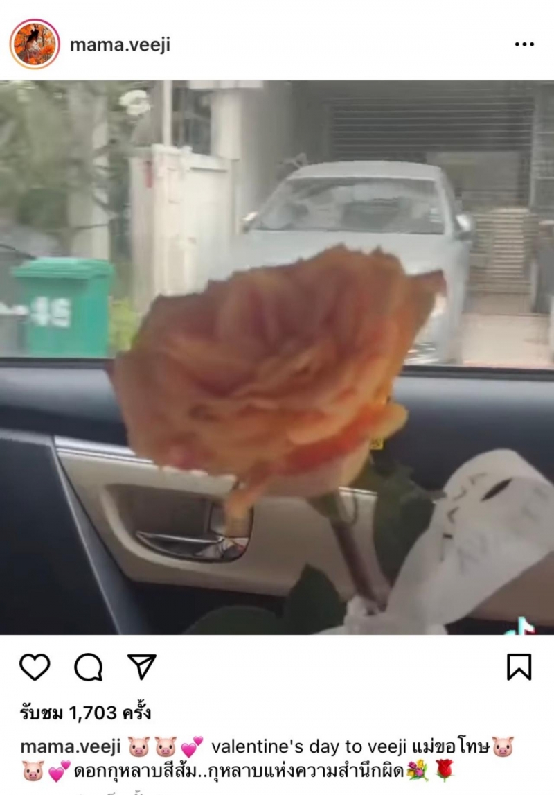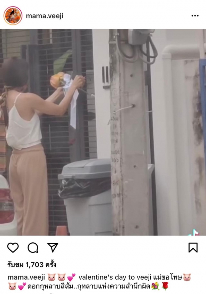 ล่าสุด ติ๊ก บิ๊กบราเธอร์ ก็ได้โพสต์คลิปวิดีโอผ่านอินสตาแกรมส่วนตัว ขณะเดินทางนำดอกกุหลาบสีส้มไปให้ลูกสาวน้องวีจีในวันเลนไทน์ เมื่อเดินทางไปถึงเจ้าตัวก็ได้นำดอกกุหลาบไปวางไว้ที่รั้วหน้าบ้าน พร้อมกับระบุข้อความว่า valentine's day to veeji แม่ขอโทษ ดอกกุหลาบสีส้ม..กุหลาบแห่งความสำนึกผิดหลังจากที่ ติ๊ก ได้โพสต์คลิปดังกล่าวไป ก็มีชาวเน็ตที่ติดตามได้เข้ามาคอมเมนต์ให้กำลังใจสาวติ๊กมากมาย แต่ล่าสุด เจ้าตัวได้ลบคลิปดังกล่าวออกจากอินสตาแกรมแล้ว