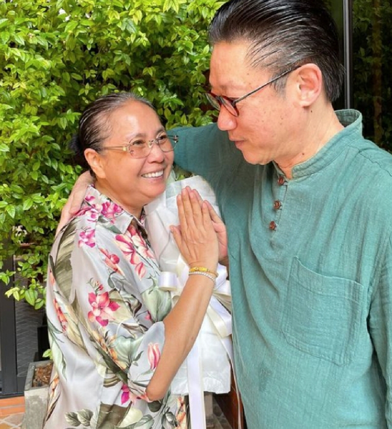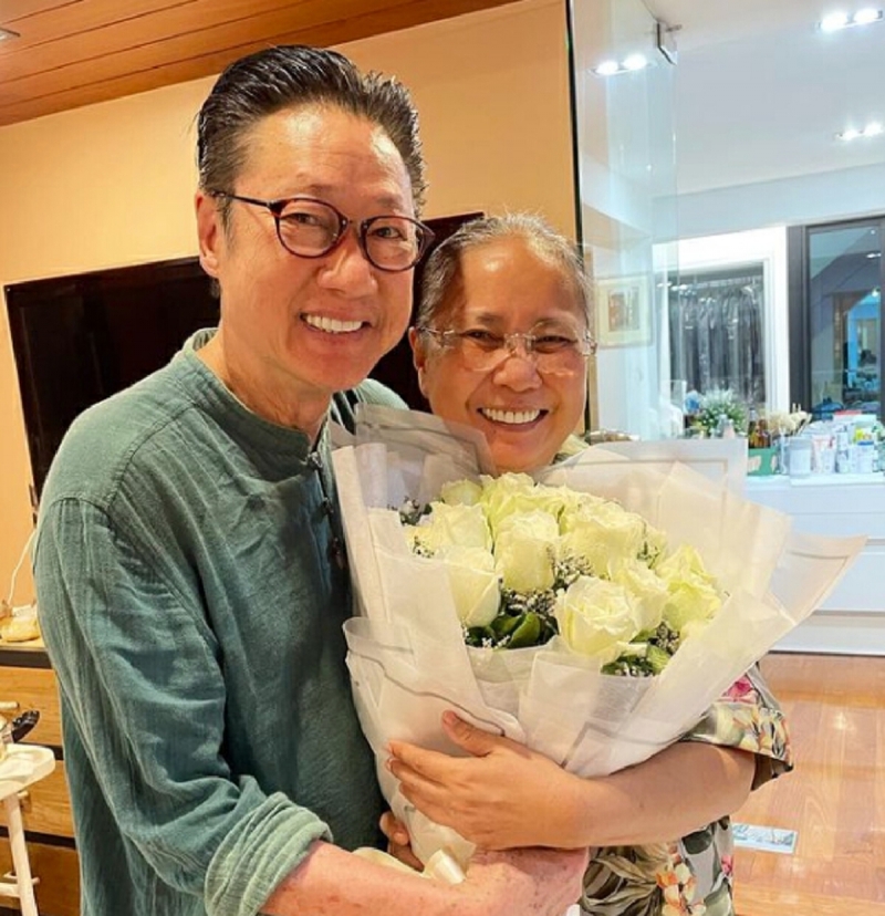 ภรรยาเสี่ยตา ปัญญา ก้มกราบหน้าอก หลังสามี มอบช่อดอกไม้ อวยพรในวันเกิด