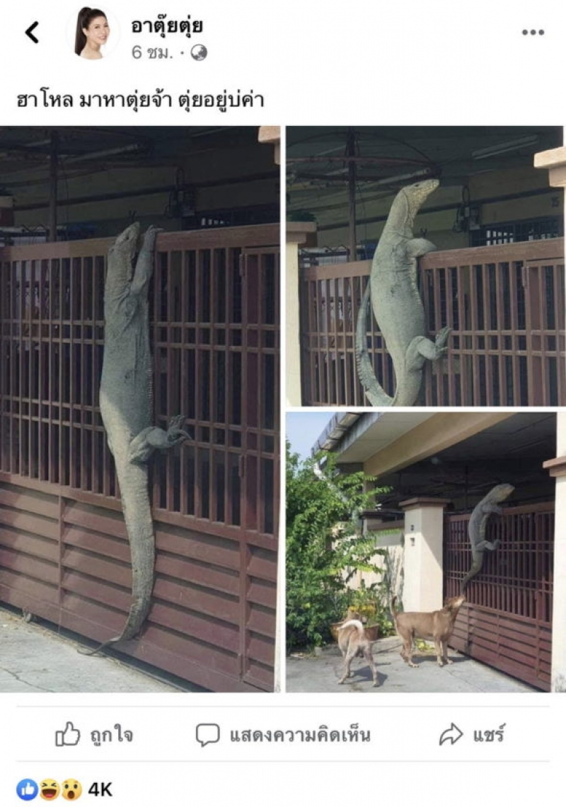 เรียกได้ว่าเป็นอีกหนึ่งเรื่องราวที่มีคนต่างเข้ามาแสดงความคิดเห็นกันเป็นจำนวนมาก หลังอาตุ๊ยตุ่ย โพสภาพสุดพีค น้องตัวเงินน้องทอง ไม่ใช่แค่ตัวเงินตัวทองธรรมดา เพราะน้องนั้นทั้งใหญ่ทั้งยาว น้องแวะมาทักท้ายถึงหน้าบ้าน เอาจริงๆเรียกได้ว่าแทบจะเข้าไปในบ้านอยู่แล้ว น้องถึงกับชะโงกหน้าข้ามรั้วบ้านแล้วด้วยซ้ำ ชาวเน็ตเห็นแบบนี้ต่างแห่ขอเลขทะเบียนบ้านกันสุดฤทธิ์