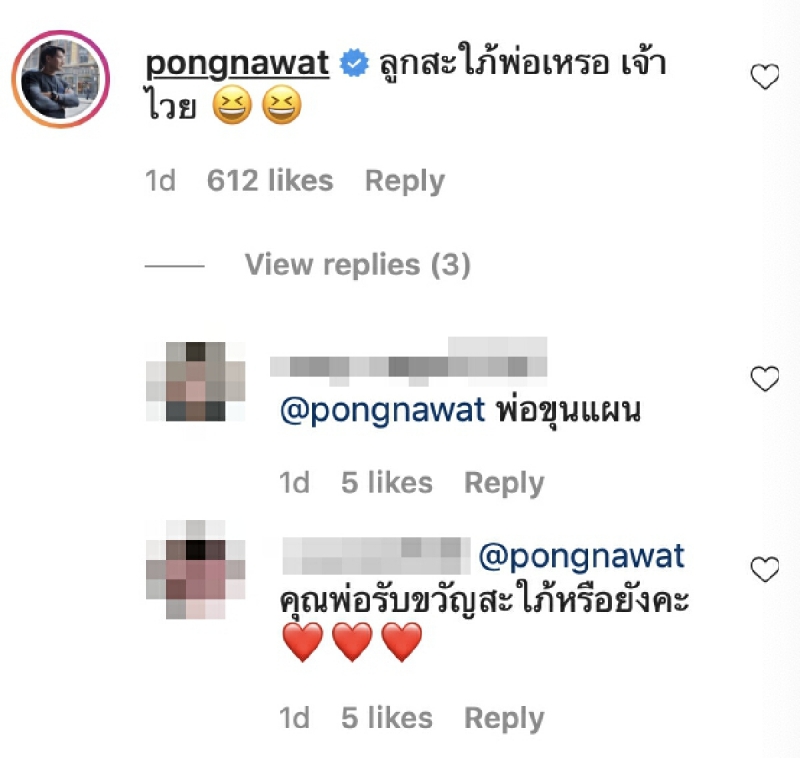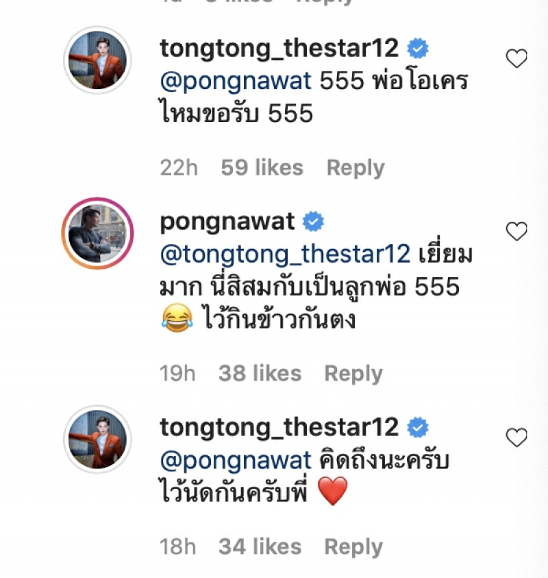ล่าสุดทางด้าน หนุ่มตงตง และ สาวเบส ก็ยังได้ปล่อยภาพคู่ออกมาแบบหวานๆ จนทางด้าน ป้อง ณวัฒน์ ได้เข้ามาคอมเมนต์กลางอินสตาแกรมของ หนุ่มตงตง เอาไว้ว่า ลูกสะใภ้พ่อเหรอ เจ้าไวย