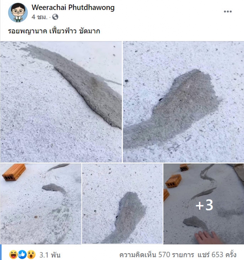รอยพญานาค เฟี้ยวฟ้าว ชัดมาก" จากรอยดังกล่าวเป็นรอยปูนที่นูนขึ้นจากพื้น จนชาวเน็ตเข้าไปแซวว่า ชัดมาก ชัดว่าเป็นปูนมาป้าย
