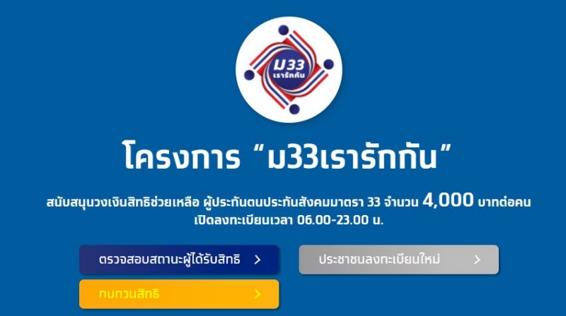 จากกรณี ครม.มีมติเห็นชอบโครงการ "ม33เรารักกัน" เยียวยาผู้ประกันตนประกันสังคมมาตรา 33 เป็นวงเงิน 4,000 บาท ใช้จ่ายผ่านแอปฯ "เป๋าตัง" อย่างไรก็ดี มีผู้ลงทะเบียนตามวันเวลาที่กำหนด ต่อมาวันประกาศผล โดยเป็นผู้ "ไม่ได้รับสิทธิ" และได้ยื่นขอทบทวนสิทธิแล้ว