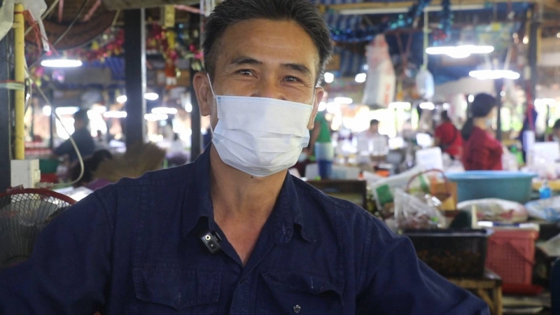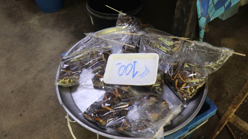ตนเข้าไปในป่าห่างจากบ้านประมาณ 3 กิโลเมตร ได้อึ่งมาประมาณ 10 กว่ากิโลกรัมเอง จัดว่าได้น้อย เพราะฝนแรกปีที่แล้วตนไปหาในป่าที่เดียวกันนี้ คืนเดียวได้อึ่งกว่า 50 กิโลกรัม วันนี้ได้แค่ 10 กว่ากิโล แบ่งไว้ทำอาหาร ส่วนหนึ่งก็นำมาขายประมาณ10 กิโลกรัม โดยอึ่งที่ราคาแพงที่สุดคืออึ่งที่มีไข่เต็มท้อง สังเกตว่าจะมีสีดำเต็มท้อง จะขายได้แพงสุดกิโลกรัมละ300 บาท หากไม่มีไข่ท้องก็จะมีสีขาวปกติ ขายที่ราคากิโลกรัมละ 200 บาท สำหรับอึ่งคละปะปนกันก็จะขายที่ 250 บาท