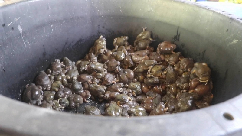 ที่ จ.หนองบัวลำภู ตั้งแต่ช่วงวันที่ 4-5 เมษายน ที่ผ่านมา ได้มีฝนตกในพื้นที่กระจายทั่วทั้งจังหวัด โดยเฉพาะพื้นที่อำเภอเมืองหนองบัวลำภู ฝนได้ตกต่อเนื่องในช่วงกลางคืน ทำให้ในช่วงนี้ ชาวบ้านในพื้นที่ ได้พากันออกไปหาจับสัตว์ พวก อึ่งอ่าง กบ เขียด มาเป็นอาหารกันตามป่าเขาและทุ่งนา ส่วนหนึ่งก็ได้มีการนำมา ขายเป็นรายได้ให้กับชาวบ้านได้เป็นอย่างดี ตามตลาดเช้า ตลาดเย็น จะพบว่ามีแม่ค้าน้ำอึ่งอ่าง กบ เขียด มาใส่กะละมังวางขายร้องระงมกันทั่วตลาด