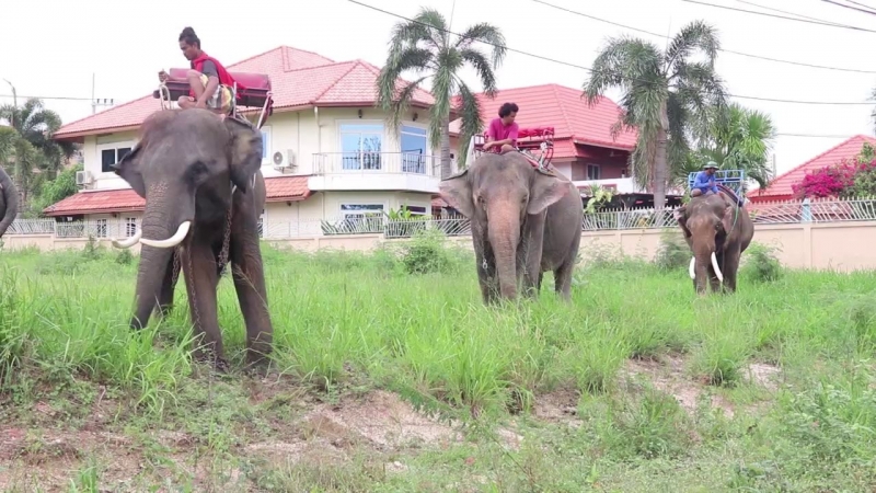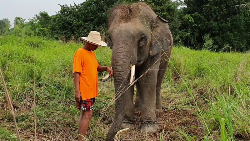 น.ส.นภาลัย หมายงาม อายุ 26 ปี เล่าว่าได้พาครอบครัวและญาติจำนวน 5 ครอบ ครัวเดินทางมาจาก จ.สุรินทร์ เพื่อมาทำงานที่ฟาร์มช้างในเขต ต.ห้วยใหญ่ อ.บางละมุง ได้นานกว่า 5 ปีแล้ว โดยได้นำช้างมาด้วย 5 เชือกเป็นช้างพลาย 4 เชือกและช้างพัง 1 เชือก เพื่อมารับจ้างพานักท่องเที่ยวเดินเที่ยวชมธรรมชาติ ซึ่งในอดีตได้รับเงินค่าจ้างของช้างพร้อมควาญจากทางฟาร์มในอัตราเชือกละ 15,000 บาท/เดือน รวมกับค่าทิปในแต่ละเที่ยวก็สามารถมีเงินมาเลี้ยงดูครอบครัวได้เป็นอย่างดี