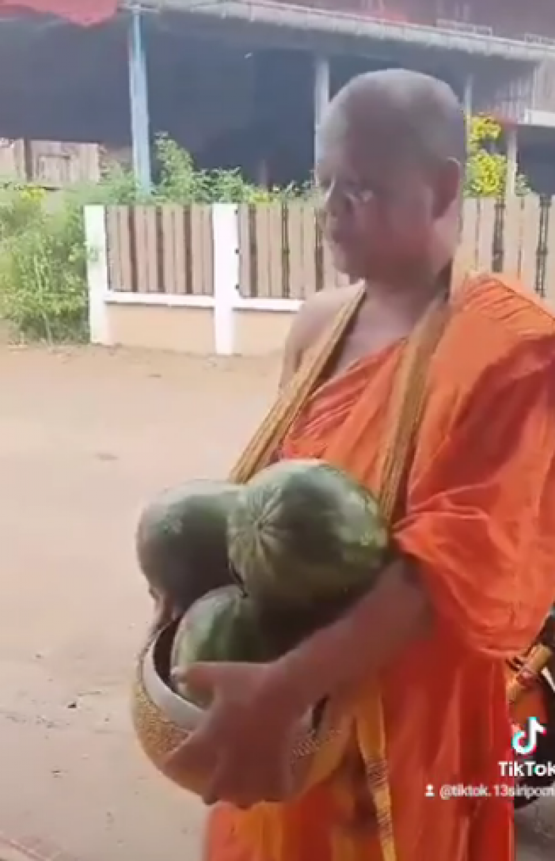 ล่าสุด หญิงสาวที่ใส่บาตรด้วยลูกแตงโมออกมาเปิดใจสาเหตุที่ใส่บาตรด้วยลูกแตงโมว่า ความจริงตั้งใจจะนำแตงโมไปถวายที่วัดแต่พอเห็นพระเดินผ่านมาพอดีเลยใส่บาตรฝากไปด้วย