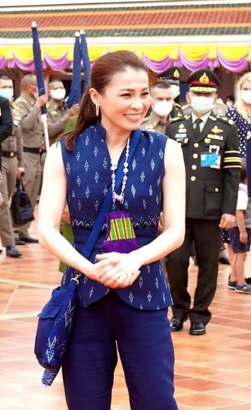 ในการนี้ สมเด็จพระนางเจ้าฯ พระบรมราชินี ทรงฉลองพระองค์ผ้าฝ้ายย้อมคราม มัดหมี่ลายสะเก็ดธรรม ผ้าประจำจังหวัดสกลนคร