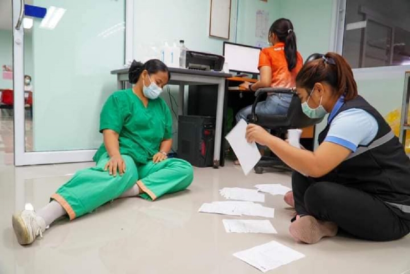 เรียกด้ว่าเป็นอีกหนึ่งภาพที่โซเชียลเข้ามาแสดงความเห็นกันเป็นจำนวนมาก ล่าสุด เพจเฟซบุ๊ก "ข่าวสารบ้านเฮา" ได้มีการเผยภาพเจ้าหน้าที่ของเหล่าทีมแพทย์ พยาบาล และบุคลากรอื่นในโรงพยาบาล ที่ทำงานเหนื่อยล้าอย่างหนัก โดยมีการระบุข้อความว่า "เป็นกำลังใจให้ จนท. รพ.ปากช่อง #เป็นห่วงนะ #ดูแลตัวเองดีดีด้วยนะ หมอฝากบอกมา ถ้าไม่อยากมานอน รพ.สนาม รักหมอ สงกรานต์นี้ ดูแลตัวเองด้วยนะ คืนนี้ จนท. คงยังไม่ได้นอน ต้องเตรียมความพร้อมรับมือโควิด ช่วงวันหยุดสงกรานต์นี้ คงไม่ได้หยุด อยากให้ทุกคนดูแลตัวให้ดีดี เป็นห่วง ไม่อยากให้ใครมานอนที่ รพ.สนาม ร่วมด้วยช่วยกันนะ เราต้องผ่านไปให้ได้ เราต้องรอด โ ค วิ ด จะเหนื่อยแค่ไหน ก็สู้ เพื่อนี้น้องชาวปากช่องเรา หมอขอแค่กำลังใจ