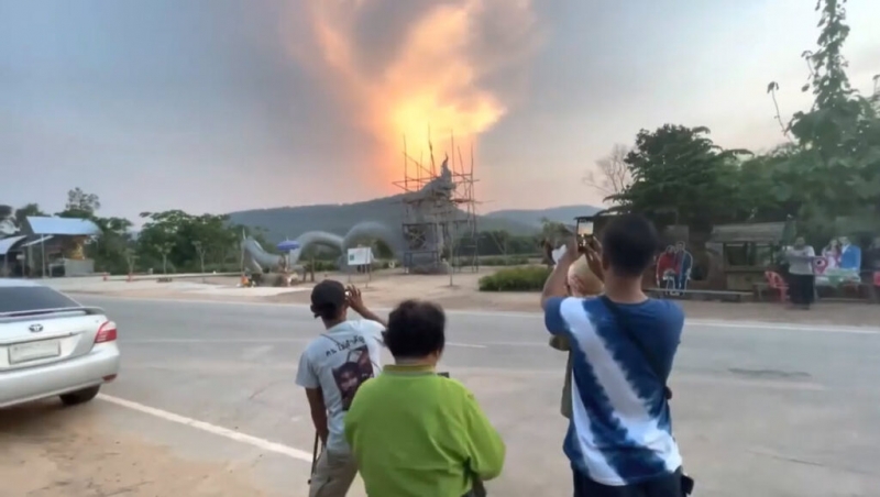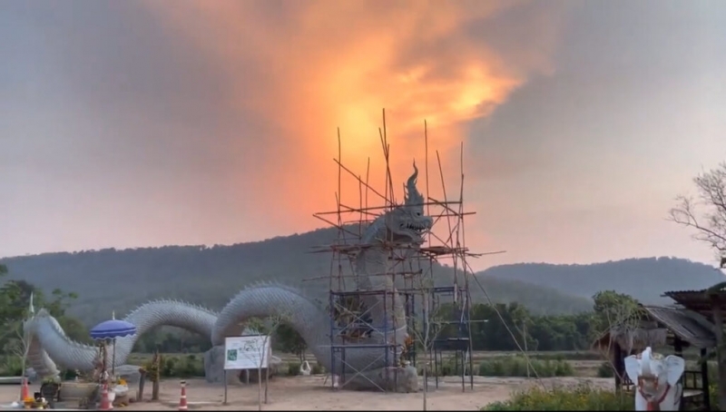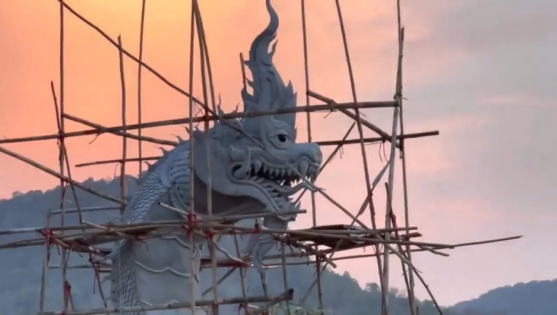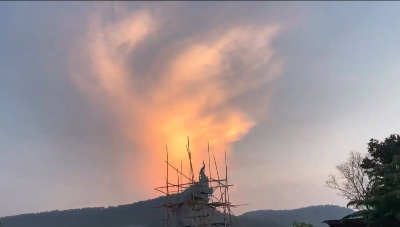 ท้องฟ้าหลังองค์พญานาคที่บ้านลุงพล ประกายทองคล้ายหัวพญานาค