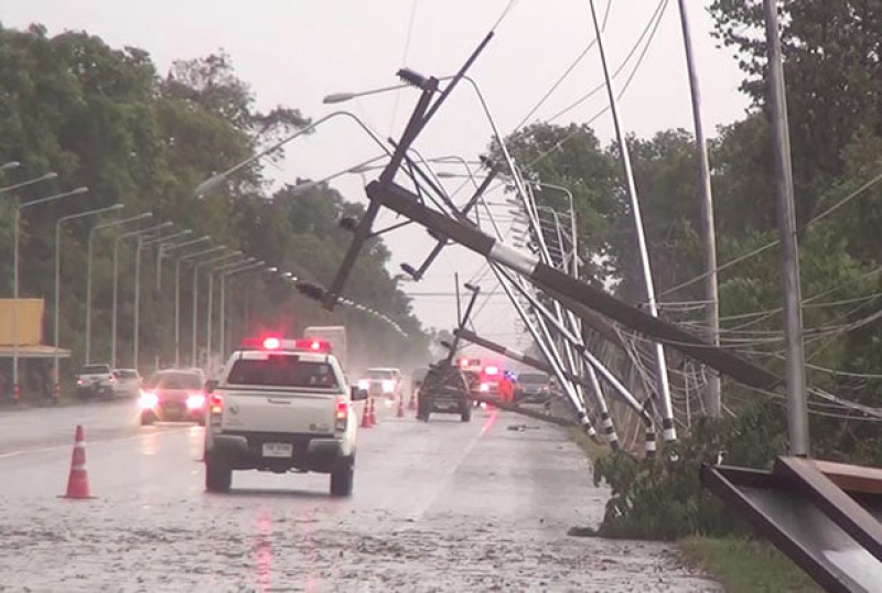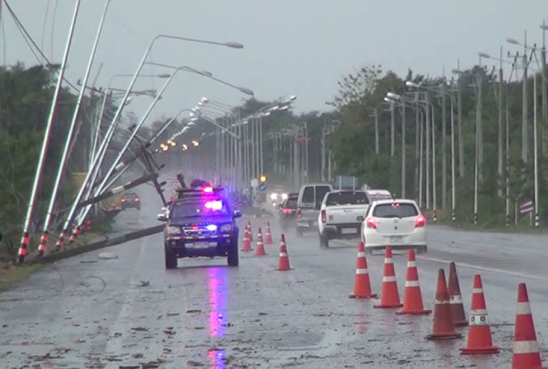 โดยที่บริเวณ กม.12-13 ถนนสายบุรีรัมย์-นางรอง บ้านหนองโคลน ตำบลสะแกโพรง อำเภอเมือง จังหวัดบุรีรัมย์ เสาไฟฟ้าแรงสูง เป็นเสาขนาด 14 เมตร จำนวน 6 ต้น และเสาไฟฟ้าส่องสว่างอีกกว่า 10 ต้น ที่ตั้งเรียงรายตั้งแต่หน้าทางเข้าบ้านหนองโคลน ต.สะแกโพรง ทางฝั่งขาออกเมืองบุรีรัมย์หักโค่นล้มเป็นทางยาว เจ้าหน้าที่ตำรวจ และกู้ภัยสว่างจรรยาธรรมสถานบุรีรัมย์ ต้องมาคอยอำนวยสะดวกประชาชนที่สัญจรผ่านไปมาเส้นทางดังกล่าว
