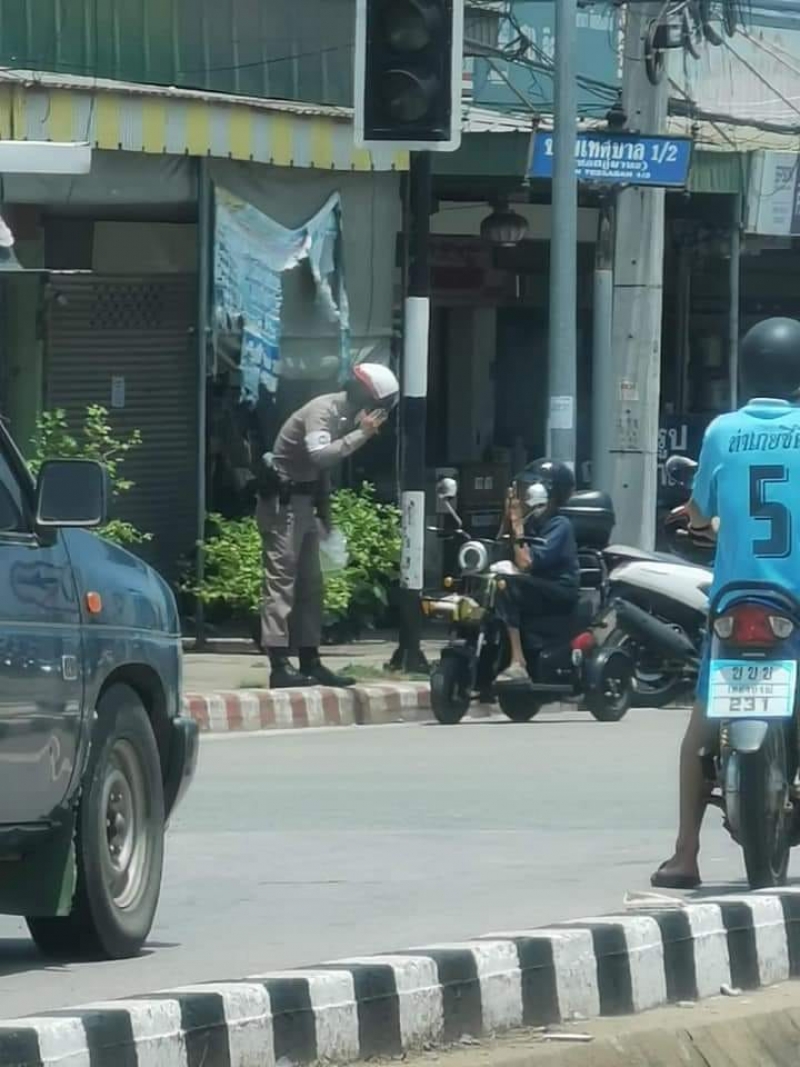 วันที่ 15 เมษายน ผู้ใช้เฟซบุ๊กชื่อ เจษฎา จันทนา ได้มีการลงเรื่องราวสุดประทับใจ ของตำรวจนายหนึ่งกับชายชรา โดยระบุว่า ทำไมตำรวจทำแบบนี้ละครับ ขอชื่นชมตำรวจท่านหนึ่ง วันนี้ 15เมย64 เวลา12.00น บริเวณสี่แยกไฟแดงบึงสามพัน ตำรวจเรียกชายวัยชรา ท่านหนึ่งขนะขับรถจักรยานยนต์ไฟฟ้าติดไฟแดงโดยไม่สวมหมวกกันน็อค และได้ไปหยิบหมวกกันน็อคใบใหม่ในตู้ป้อมตำรวจมาสวมให้ชายชรา พร้อม ยกมือไหว้กราบขอบคุณ