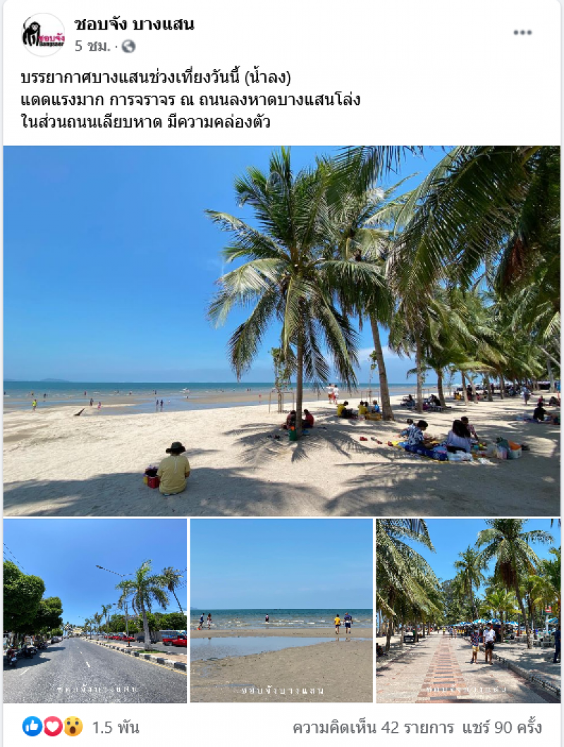 ถึงว่า คนถามมาในเพจ ภาพเก่า ภาพใหม่ เอาเป็นว่า ใดใด แล้ว ที่ทีวีเอาไปออกเป็นภาพตอนไหน เมื่อไหร่ และที่ไหน ไม่ทราบ แต่ไม่ใช่ภาพที่เพจโพสต์ เพราะบรรยากาศริมหาดบางแสนที่เพจลง ต่างกันมาก กับภาพข่าวทีวี อันนี้โพสต์บรรยากาศจริงของเมื่อวาน ไม่ได้นั่นหนาแน่นและเยอะแบบในข่าวทีวี