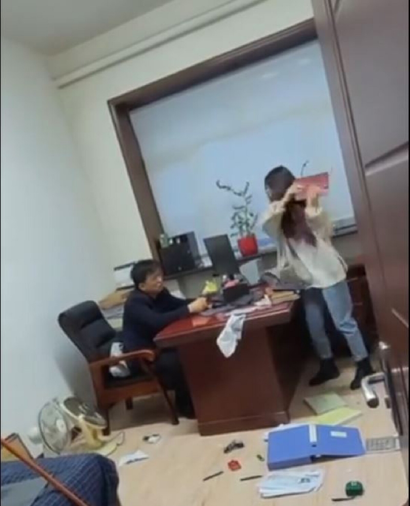 นางสาว โจว เจ้าหน้าที่รัฐหญิง เป็นหนึ่งในลูกน้องของหวัง เธอถูกหัวหน้ารายนี้ส่งข้อความเชิง คุ ก ค า ม มาหาบ่อยครั้ง จนทำให้เธอทนไม่ไหว ปรี๊ดแตก บุกเข้าไปอาละวาดอย่างหนัก