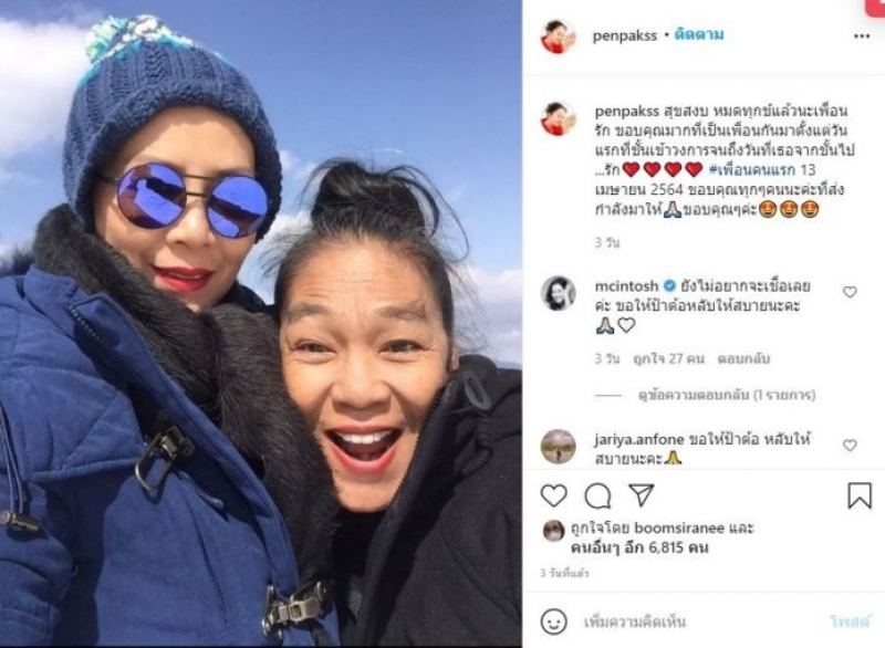 เรียกได้ว่าเป้นอีกหนึ่งเรื่องราวที่คนเข้ามาแสดงความเสียใจกนเป็นจำนวนมาก หลัง ต่าย เพ็ญพักตร์ เผยภาพกับเพื่อนรักสุดอาลัยผ่านโซเชียล พร้อมเปิดใจสุดเศร้าว่า สุขสงบ หมดทุกข์แล้วนะเพื่อนรัก ขอบคุณมากที่เป็นเพื่อนกันมาตั้งแต่วันแรกที่ชั้นเข้าวงการจนถึงวันที่เธอจากชั้นไป รัก #เพื่อนคนแรก 13 เมษายน 2564 ขอบคุณทุกๆคนนะค่ะที่ส่งกำลังมาให้ขอบคุณๆค่ะ