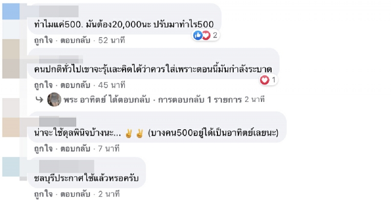 ล่าสุด ได้มีผู้ใช้เฟซบุ๊กรายหนึ่งได้ออกมาโพสต์ข้อความระบุว่า เตือนกันครับ ใส่แมสออกนอกบ้านนะครับ มีข้อหานี้แล้ว
