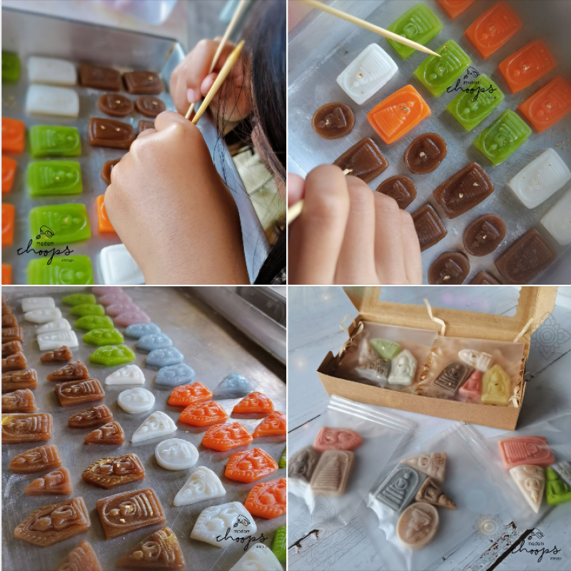 จากกรณีเรื่องราวแชร์ต่อกันในโลกออนไลน์และได้รับความสนใจอย่างมากของร้าน มาดามชุบ ที่ทำ ขนมอาลัว ออกมาขายรูปทรงพระเครื่องหลากสีสัน
