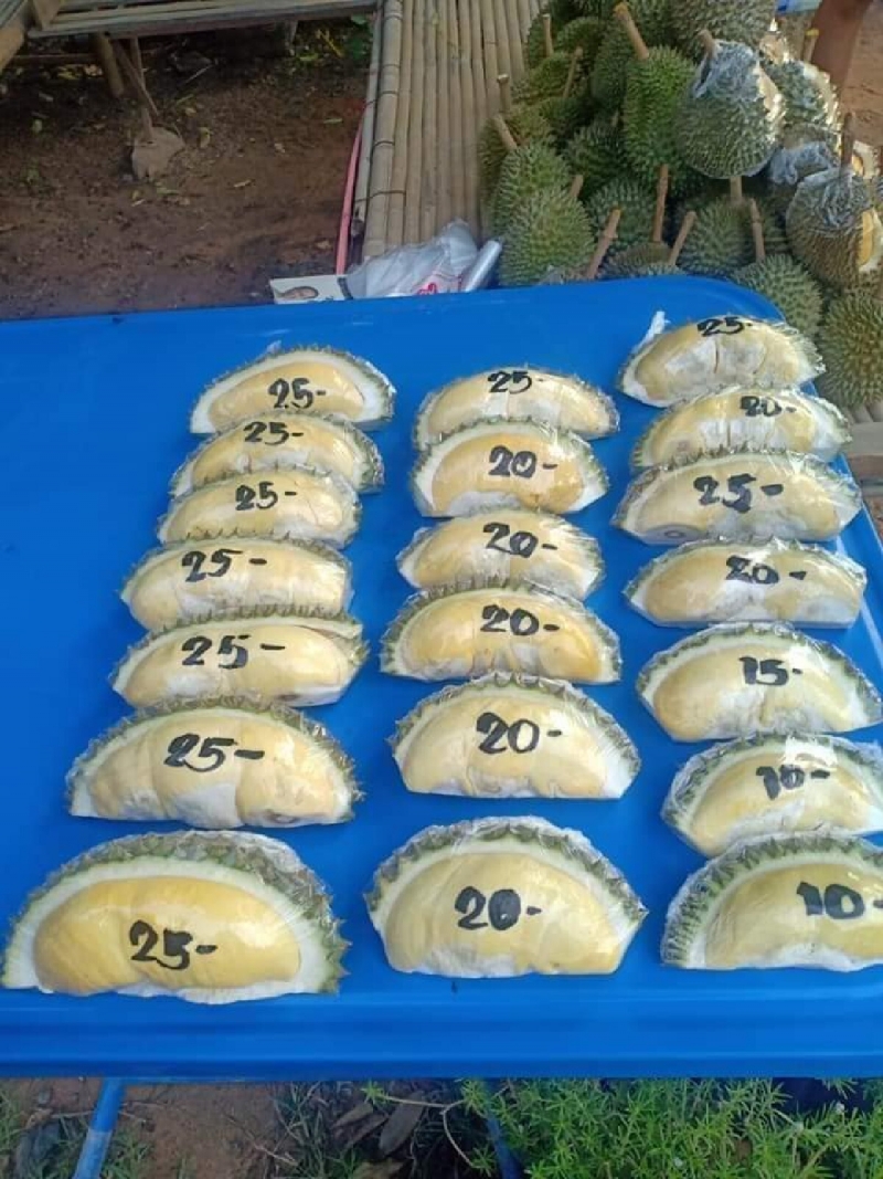 วันละ 1 ตัน ขายโลละ 100 บาท แต่ในปีนี้คนไทยเจอพิษเศรษฐกิจ ไม่มีรายได้ และในจังหวัดนครราชสีมาส่วนใหญ่อาชีพรับจ้าง วันละ 200-300 บาท ไม่สามารถซื้อทุเรียนทานได้ จึงเกิดไอเดียนำพูเล็กๆ มาแบ่งขายให้คนไทยได้ทานทุเรียนแม้จะมีเงินหลักสิบบาท จนตอนนี้มีทั้งคนนครราชสีมาและคนต่างจังหวัดมาซื้อจำนวนมาก ต้องเพิ่มจำนวนรับซื้อ เป็นวันละ 2-3 ตัน