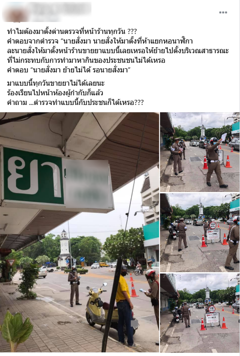 วันที่ 29 เม.ย.64 ผู้ใช้เฟซบุ๊กรายหนึ่ง โพสต์ภาพพร้อมข้อความลงในกลุ่ม Lampang City กลุ่มข่าวสารใน จ.ลำปาง ที่มีสมาชิกมากถึง 2.9 แสนคน หลังมีเจ้าหน้าที่ตำรวจมาตั้งด่านที่หน้าร้าน ทำให้ขายของไม่ได้ ระบุว่า