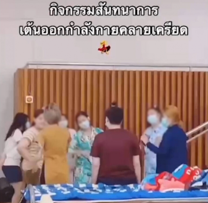 พยาบาลสาวคนนี้บอกด้วยว่า ไม่ได้มีแค่กิจกรรมเต้นกันเท่านั้น แต่ในแต่ละวันผู้ป่ว ยยังช่วยกันเป็นจิตอาสา ทำประโยชน์ให้กับ รพ.สนาม ทั้ง เก็บขยะ ทำความสะอาด ล้างห้องน้ำ ให้กำลังใจกัน และกัน ส่วนตนเองที่เป็นพยายาลวิชาชีพก็ยังช่วยทีมแพทย์พยาบาลดูแลผู้ป่ว ยด้วย เพื่อลดความเสี่ยงให้กับทีมแพทย์พยาบาล ไม่ต้องเข้ามาในพื้นที่โรงพยาบาลสนามหากไม่จำเป็น