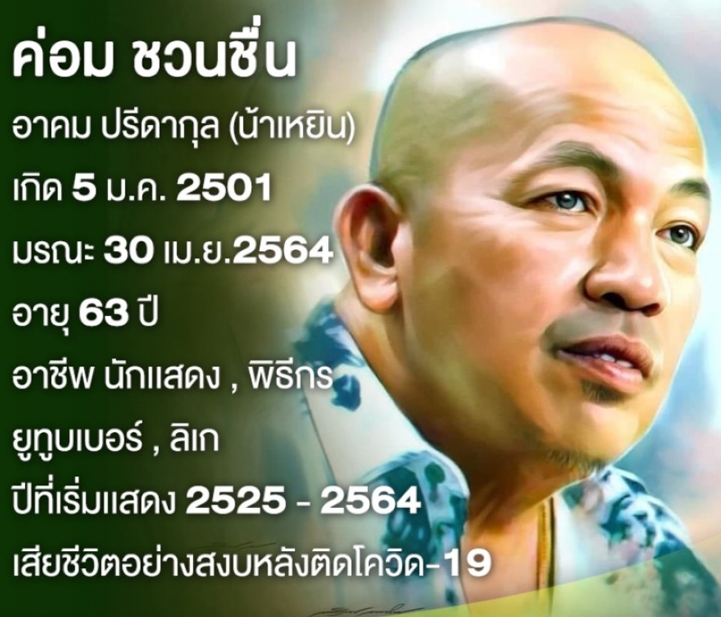 จากกรณีการจากไปของ "น้าค่อม ชวนชื่น" หรือ นายอาคม ปรีดากุล อดีตศิลปินตลก ซึ่งได้ติด CV-19 นั้น ล่าสุด มีรายงานว่าที่แผงจำหน่ายสลากกินแบ่งฯ ใหญ่ๆ หลายจุดข พบว่ามีหลายคน แห่เดินทางมาเลือกหาซื้อสลากกินแบ่งรัฐบาลกันเป็นจำนวนมาก ทั้งเลือกหาซื้อเลขที่ตัวเองคิดตั้งใจว่าจะซื้อเอาไว้ในครั้งนี้ แต่ที่มีเพิ่มมาก็คือในเรื่องของอายุและปีเกิดของตลกชื่อดัง ว่าเป็นเลขอะไรแล้วก็มาเลือกหาซื้อ จนทำให้เลขที่เป็นปี พ.ศ.และอายุ โดยเกิดในปี 2501 จากไปขณะอายุ 63 ปี