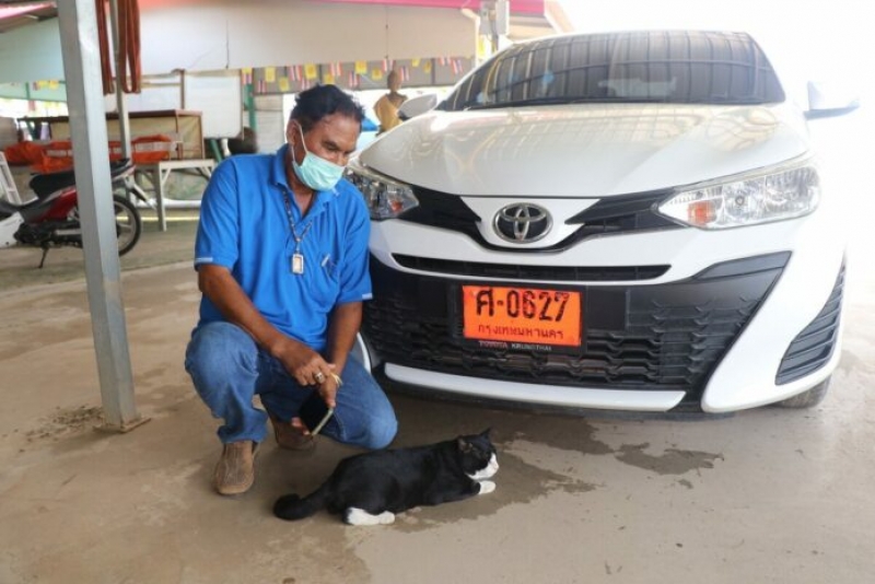 จากกรณีเมื่อวันที่ 27 เม.ย.64 ที่บริเวณวัดใหม่โคกมะรุม ต.ม่วงเตี้ย อ.วิเศษชัยชาญ จ.อ่างทอง พบชาวบ้านและนักท่องเที่ยวแฟนคลับต่างจับจ้องไปที่รถเก๋งป้ายแดง ทะเบียน ศ 0627 กรุงเทพมหานคร หลังเจ้าโทน แมวเซเลป เดินไปนอนเล่นอยู่บริเวณหน้าป้ายทะเบียนรถยนต์เก๋งป้ายแดง ที่เจ้าของเดินทางมากราบไหว้ขอพรพระที่วัดใหม่โคกมะรุม