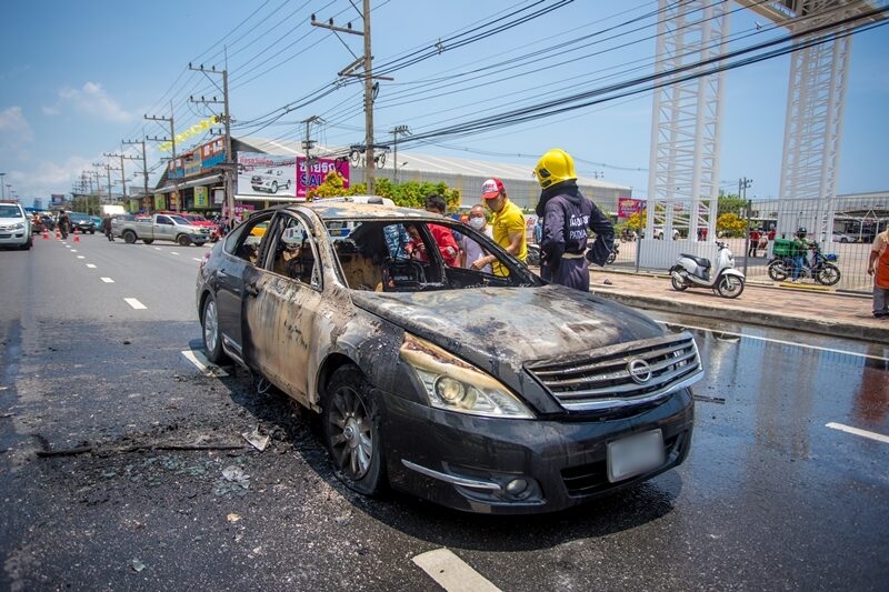 เมื่อเวลา 12.30 น. วันที่ 4 พ.ค.2564 ศูนย์วิทยุหน่วยกู้ภัยสว่างบริบูรณ์ฯพัทยา รับแจ้งเหตุไฟไหม้รถยนต์ บนถนนสุขุมวิท พัทยาใต้ บริเวณหน้าแม็คโคพัทยา ฝั่งขาเข้าพัทยา อ.บางละมุง จ.ชลบุรี หลังรับแจ้งจึงรุดไปไปตรวจสอบพร้อมเจ้าหน้าที่หน่วยบรรเทาสาธารณภัยเมืองพัทยา และรถดับเพลิงเมืองพัทยา