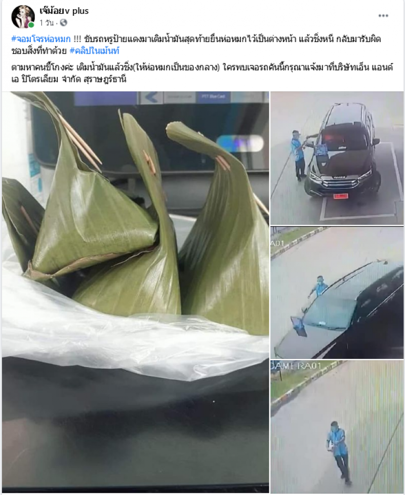 จากกรณีเมื่อวันที่ 29 เม.ย.64ที่ผ่านมา เพจเฟซบุ๊ก เจ๊ม้อยv plus เล่าเรื่องราวของรถยนต์หรูป้ายแดง ซึ่งเข้าไปเติมน้ำมันภายในปั๊มน้ำมันแห่งหนึ่ง ใน จ.สุราษฎร์ธานี แต่กลับไม่จ่ายเงินค่าน้ำมัน โดยให้ "ห่อหมก" กับพนักงานปั๊มแทน โดยระบุว่า