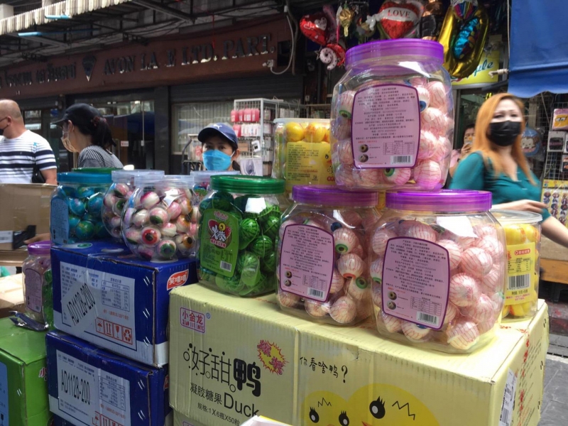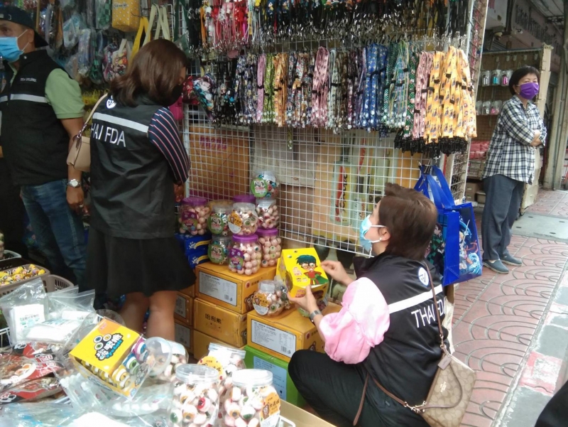 ผลการตรวจค้นร้านค้าย่านตลาดสำเพ็ง พบขนมเยลลี่ลูกตา ไม่มีเลขสารระบบอาหาร ไม่มีฉลากภาษาไทย จำนวนหลายรายการใน 5 ร้านค้า จึงตรวจยึดขนมเยลลี่ลูกตา 22,000 ชิ้น และลูกอมลูกตา 11,000 ชิ้น มูลค่ากว่า 300,000 บาท เข้าข่ายความผิดเรื่องการจำหน่ายอาหารที่แสดงฉลากไม่ถูกต้อง มีโทษปรับไม่เกิน 30,000 บาท