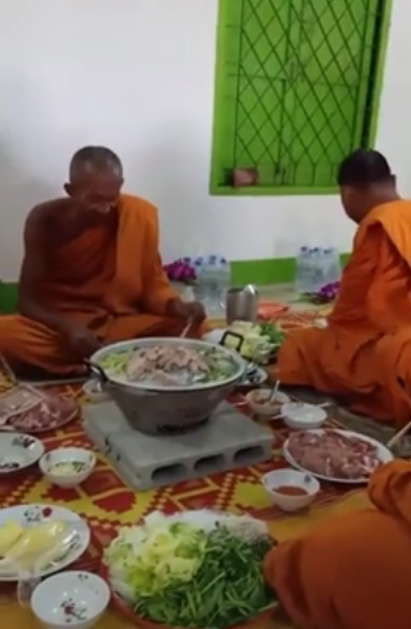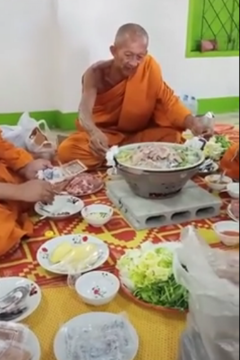 วันที่ 10 พฤษภาคม เฟซบุ๊กเพจชื่อดังได้มีการโพสต์คลิปดราม่า พระฉันหมูกระทะ โดยระบุว่า ใน TikTok เถียงกันใหญ่เลยว่าพระฉันแบบนี้ได้ไหม บางก็บอกว่าได้เพราะเป็นพระบ้านไม่ใช่พระป่า คือพระไม่ได้ใช้พระวินัยเดียวกันเหรอวะ ประเด็นนี้พระมหาไพรวัลย์ เคยบอกไว้ว่า