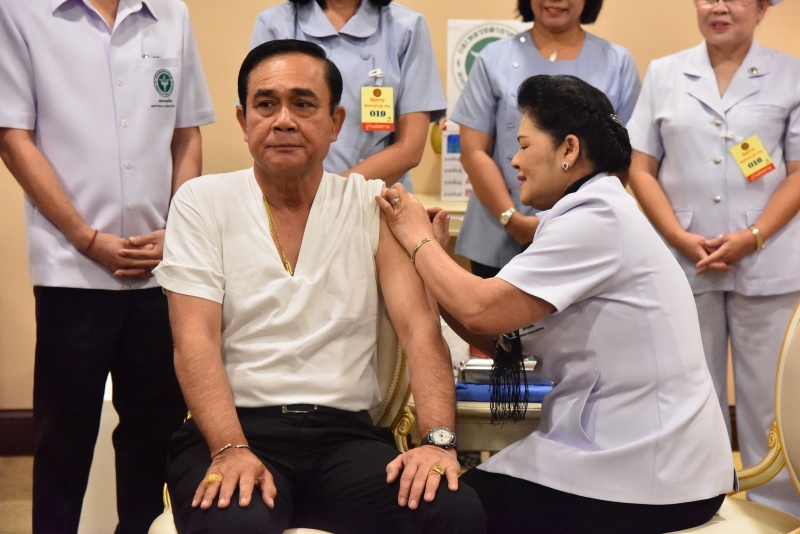 ทั้งนี้ นายกรัฐมนตรี ได้ฉีดวัคซีนแอสตร้าเชเนก้า เข็มแรกของประเทศ เมื่อวันที่ 16 มี.ค ที่ผ่านมา โดยฉีดที่ทำเนียบรัฐบาล ก่อนเข้าประชุม ครม. โดยไม่มีผลกระทบข้างเคียงใดๆ เพราะหลังดู อาการ ครบ 30 นาที ก็เข้าประชุม ครม. ทันที และยังบอกด้วยว่า หลังฉีดวัคซีน แข็งแรงกว่าเดิม