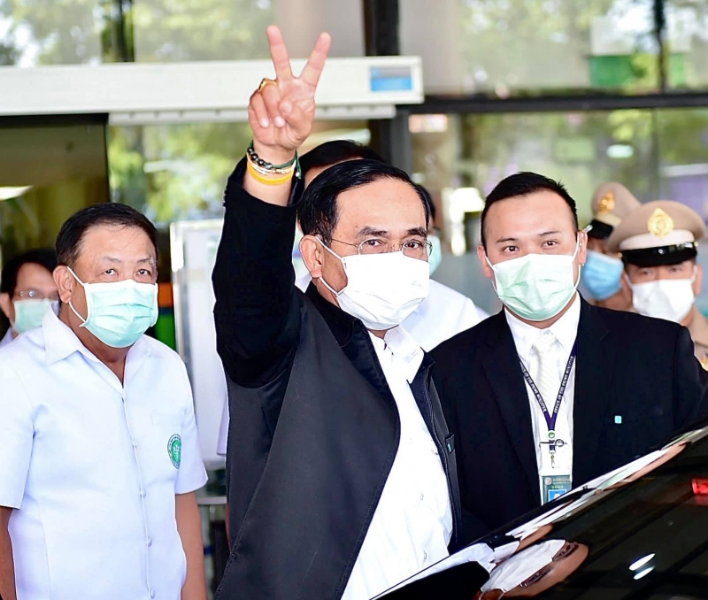 โดยหลังจากที่รับการฉีดวัคซีนและพักดูอาการเรียบแล้วนายกรัฐมนตรี จะเดินทางเข้าทำเนียบฯทันที เพื่อเป็นประธานการประชุมคณะกรรมการบริหารโครงการเชื่อมสวนสาธารณะ "เบญจกิติ" กับสวนสาธารณะอื่นๆ ในกรุงเทพมหานคร ผ่านระบบ Video Conference ที่ตึกไทยคู่ฟ้า ระหว่างขึ้นรถกลับได้ยกมือชู 2 นิ้วแก่สื่อมวลชน และขณะที่ขบวนรถกำลังขับผ่านหน้า รพ. ทาง พล.อ.ประยุทธ์ ได้เปิดกระจกรถและชู 2 นิ้วอีกครั้ง พร้อมพูดว่า สบายดี