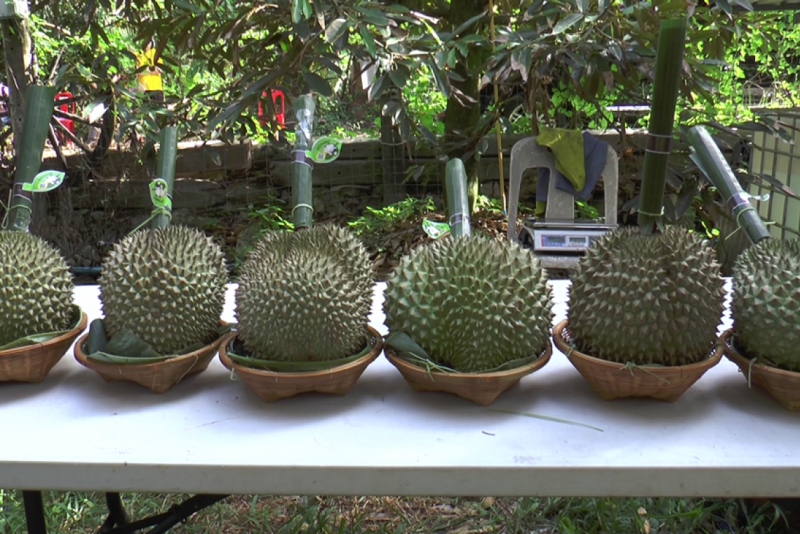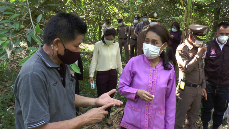 พบว่าในวันนี้ มีผลิตผลของลูกทุเรียนออกลูกเต็มต้น อยู่ในสวนเป็นจำนวนหลายร้อยต้น ทางคณะรัฐมนตรีช่วยว่าการกระทรวงศึกษาธิการ ได้พูดคุยและให้กำลังใจกับเจ้าของสวนที่ได้รับผลกระทบ หลังจากพูดคุย แลกเปลี่ยนความรู้กับเกษตรกรชาวสวนทุเรียนแล้ว ทางดร.ชัยรัตน์ ซึ่งเป็นนักธุรกิจชื่อดัง และรู้จักกันดีเพราะทุกปีที่ผ่านมา จะเป็นผู้ที่ประมูลทุเรียนพันธ์ก้านยาว ราคา 8 แสนบาทแพงที่สุดในโลก โดยนำเงินที่ได้จากการประมูลช่วยเหลือหน่วยงานการกุศลหลายแห่งตามที่เป็นข่าวโด่งดังมาแล้ว จึงตัดสินใจเหมาทุเรียนทั้งสวน โดยให้ ดร.กนกวรรณ วิลาวัลย์ รัฐมนตรีช่วยกระทรวงศึกษาธิการ ปีนบันไดตัดลูกทุเรียนด้วยตัวเองเพื่อเป็นเกียรติแก่คณะที่มาในวันนี้