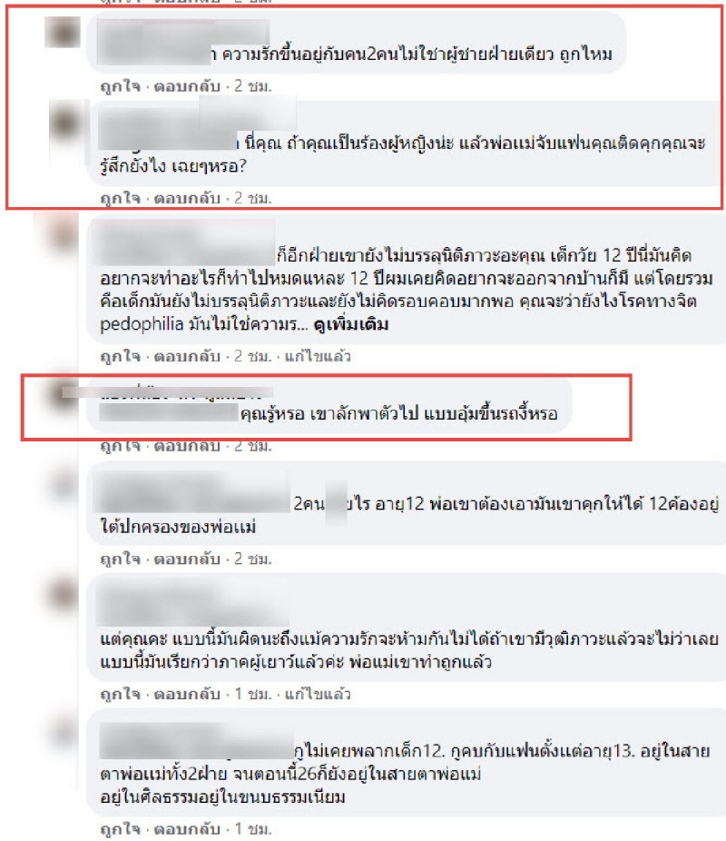 ล่าสุดชาวเน็ตตามคอมเม้นต์สนั่น หนุ่มออกความคิดเห็นถึงความรักของสาวน้อยวัย 12 กับแฟนหนุ่ม หลังฝ่ายชายพรั่งพรูโดนพ่อแฟนสาวกีดกัน ทั้งที่ย้ำแล้วว่ารักลูกสาวเขาจริง เกรียนคีย์บอร์ดลั่น ถ้าเขารักกันจริง พ่อเเม่ควรเปิดใจ ไม่ใช่กีดกัน