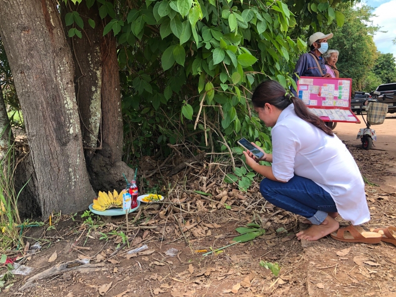 นางสาวชบาไพร หมื่นเรือคำ อายุ 44 ปี อยู่บ้านเลขที่ 46 หมู่ 9 ต.กุดบง อ.โพนพิสัย หนึ่งในชาวบ้านที่มาดู อธิบายว่า ตนมองเห็นจอมปลวกเป็นลักษณะคล้ายหญิงคนหนึ่งอุ้มลูกอยู่แนบอกแล้วก้มหน้ามอง ซึ่งชาวบ้านส่วนใหญ่ที่มาดูต่างลงความเห็นเป็นเสียงเดียวกัน หลังจากนี้จะลองเสี่ยงโชคดูเผื่อว่าจะมีโชคบ้าง