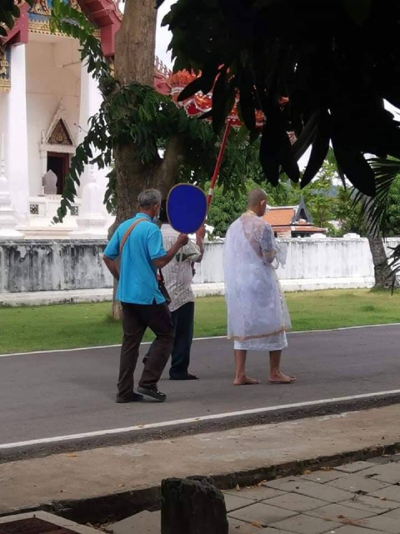 โดยทางเพจได้มีการระบุข้อความว่า แม่ถือไตรนำหน้าพาเข้าโบสถ์ พ่อคนโปรดอุ้มบาตรเดินตามหลัง ไม่มีงานฉลองให้โด่งดัง บวชลำพัง ก็เป็นสงฆ์ ตรงตั้งใจ อนุโมทนาบุญพระสงฆ์ทุกรูป ที่อยู่เป็นเนื้อนาบุญ" โดยจากรูปจะเห็นว่าคุณแม่ของนาคเดินถือไตรครองนำหน้า โดยที่ด้านหลังของนาคก็มีคุณพ่อที่กำลังถือตาลปัตรและบาตรให้กับลูกที่กำลังจะเข้าพิธีอุปสมบท และมีญาติอีกจำนวนหนึ่งร่วมพิธีเพียงเท่านั้น ไม่จำเป็นต้องมีดนตรีแห่เลี้ยงฉลอง