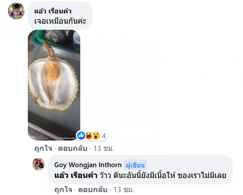 หลังจากที่โพสต์ลงไป ต่างมีชาวโซเชียลเข้ามาแสดงความคิดเห็นเป็นจำนวนมาก บางรายบอกว่า อย่างนี้ต้องถูกรางวัลแน่ๆ บางรายก็ให้ความรู้ว่าเป็น ทุเรียนพันธุ์เกสร เป็นพันธุ์พื้นเมืองที่หากินยากมาก ด้านเจ้าของโพสต์เผยว่าเมื่อแกะดู พบว่าทุเรียนที่งอกเพิ่มขึ้นมานั้นไม่มีเนื้อแต่อย่างใด ทั้งนี้ มีคนเข้ามาแสดงความคิดเห็นว่า เจอเหมือนกันอีกด้วย
