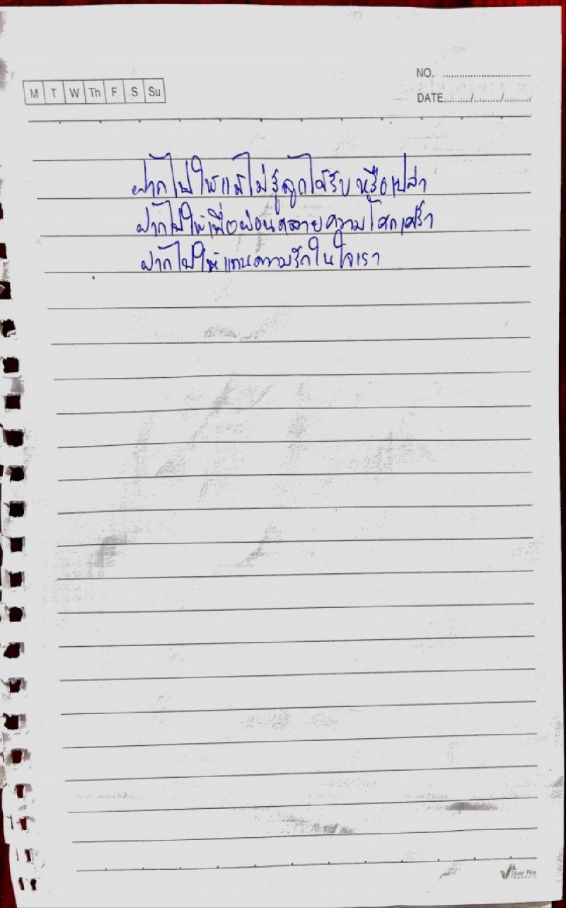 - บันทึกหน้าที่ 3 ฝากไปให้ แม้ไม่รู้ลูกได้รับหรือเปล่า ฝากไปให้เพื่อผ่อนคลายความโศกเศร้า ฝากไปให้แทนความรักในใจเรา
