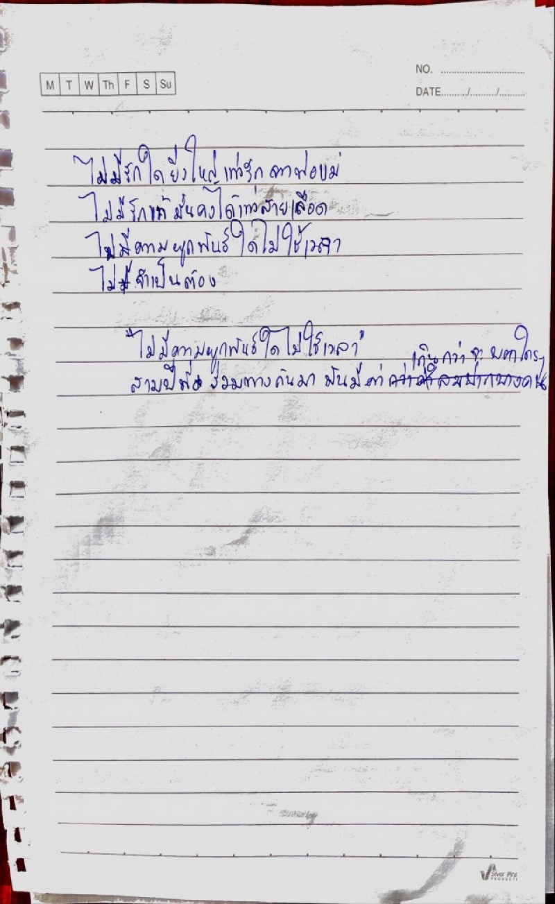 - บันทึกหน้าที่ 2 ไม่มีรักใดยิ่งใหญ่เท่ารักจากพ่อแม่ ไม่มีรักแท้มั่นคงได้เท่าสายเลือด ไม่มีความผูกพันธ์ใดไม่ใช้เวลา 3 ปีที่ร่วมทางกันมา มันมีค่าเกินกว่าจะบอกใคร