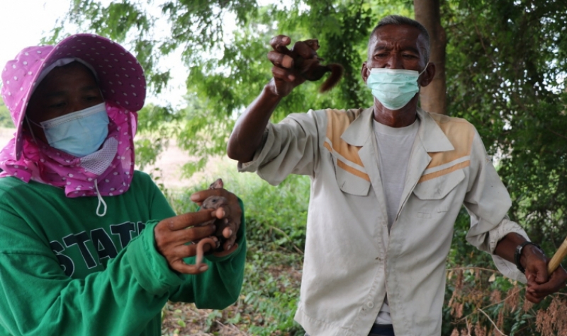 วันที่ 6 มิ.ย. 64 มีรายงานว่าที่บริเวณริมถนนอ่างทอง - อยุธย า ต.โพสะ อ.เมืองอ่างทอง มีสองสามีภรรยาที่มีอาชีพแปลกสอยกระรอกขาย โดยการขับขี่รถจักรยานยนต์ พร้อมด้วยอุปกรณ์ไม้ยาว 5–6 เมตร จำนวน 4–5 ท่อน ที่มีการทำด้ามต่อกันได้ เพื่อให้มีความยาวในการสอยต้นไม้ที่มีรังอยู่สูงๆ โดยภรรยาซ้อนท้ายถือไม้รวกอุปกรณ์การสอยรังกระรอก สามีเป็นผู้ขับขี่ไปตามท้องถนนแล้วมองไปยังต้นไม้สูงๆ