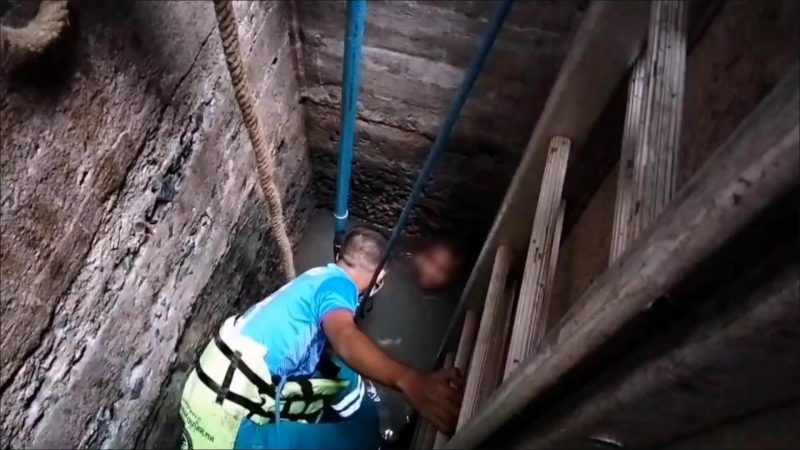 หนุ่มตกบ่อ จนท.ช่วยนานกว่า 4 ชั่วโมง ไม่สำเร็จ สุดท้ายเดินขึ้นมาเอง