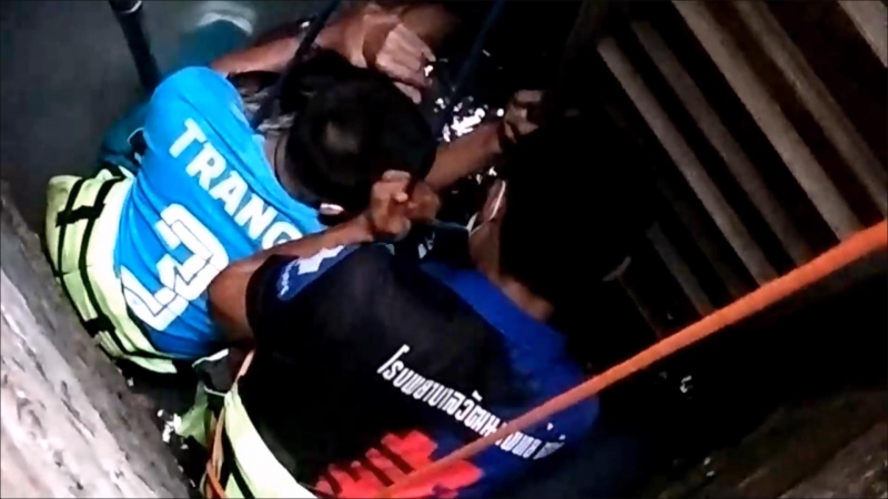 ที่เกิดเหตุ พบเป็นบ้านห้องแถวชั้นเดียว ตั้งอยู่บน ถ.รักษ์จันทน์ ต.ทับเที่ยง อ.เมือง จ.ตรัง ซึ่งมีบ่อน้ำภายในบ้าน ลึกประมาณ 13 เมตร และ ผู้ที่ตกลงในบ่อน้ำทราบชื่อคือนายธนินวัตน์ (สงวนนามสกุล) หรือ น๊อต อายุ 40 ปี โดยนายธนินวัตน์ ได้ใช้เท้ายันกับหินที่ผนังบ่อน้ำ ให้มือยันผนังบ่อเพื่อพยุงตัวไว้ เจ้าหน้าที่มูลนิธิกุศลสถานตรัง และ เจ้าหน้าที่ดับเพลิง เทศบาลนครตรัง ได้สวมเชื้อชูชีพ ใช้เลือกรัดเอวตัวเอง พร้อมใช้บันไดสไลด์ หย่อนลงในบ่อน้ำดังกล่าว