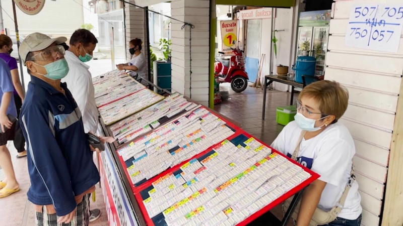 คนแห่รอซื้อลอตเตอรี่เลข แม่น้ำหนึ่ง