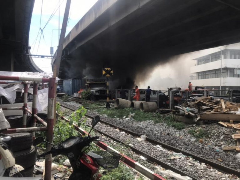ที่เกิดเหตุพบเพลิงลุกไหม้กองขยะ ข้างซากรถบรรทุก 6 ล้อ ซึ่งจอดทิ้งอยู่บริเวณดังกล่าวมานานนับสิบปี โดยแสงเพลิงได้ลุกลามไปติดรถของชาวบ้านที่จอดอยู่ใกล้ๆกัน จนได้รับความเสียหายช่วงท้ายรถถึงห้องโดยสาร อีก 3 คัน
